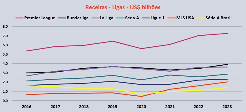 Receitas dos clubes brasileiros em 2023 – R$ milhões