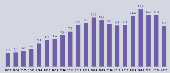 As dívidas dos TOP 20 clubes em 2023 foram de R$ 8,9 bi, redução de 21%, já descontado o impacto da inflação.