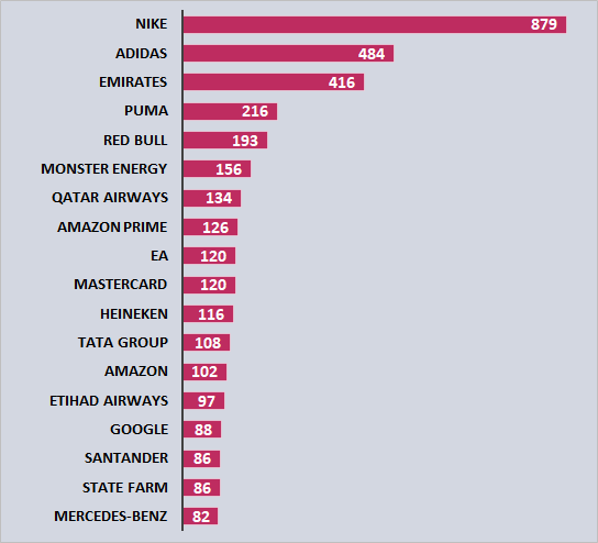 Marcas patrocinadoras com maior retorno no digital- Em 2023- US$ milhões