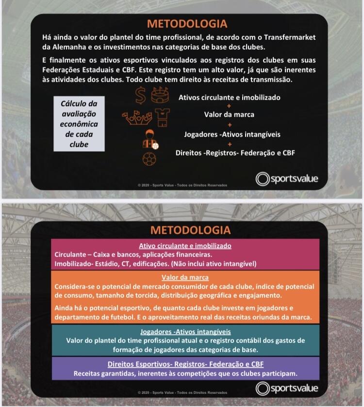 A metodologia avalia ativos, marca, plantel, categoria de base e registro nas federação e CBF. Os clubes que souberam manter seus ativos, cresceram na avaliação.