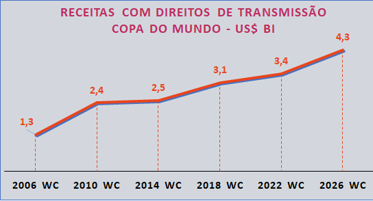 Já os patrocínios atingirão US$ 2,8 bi valores recordes para a FIFA.