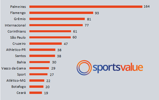 Matchday revenues generated by Brazilian clubs reached a record in 2018. Brazilian football clubs produced R$ 999 million (US$ 257 million), compared to R$ 943 million ( US$ 283 million) in 2017.
