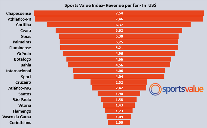 We present an unpublished index called Revenues  per Fan,  for the main Brazilian teams.