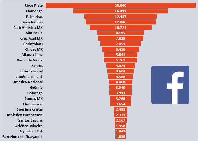 Flamengo is the biggest highlight outside Europe, with 167 million total interactions, 9th in the world, 7th on Instagram, 5th on Twitter and 1st on Youtube.