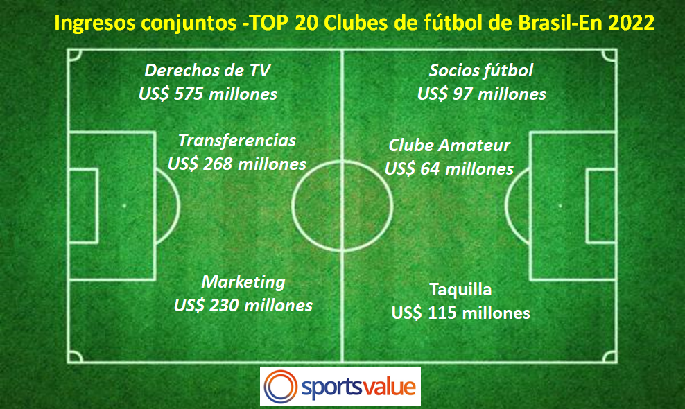 Ingresos TOP 20 clubes brasileños – US$ millones