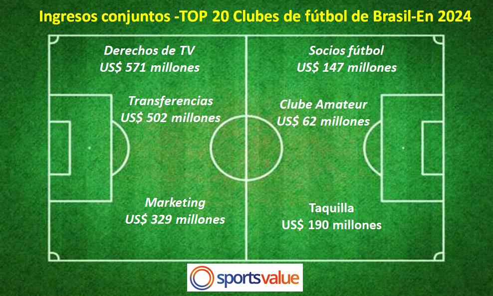 Ingresos de los 20 principales clubes brasileños – US$ millones