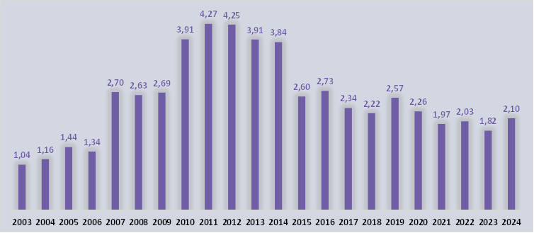 Los niveles de deuda de los 20 principales clubes alcanzaron los US$ 2.1 mil millones en 2024, en comparación con casi US$ 1.8 mil millones en 2023. En R$, las deudas aumentaron un 22%.
