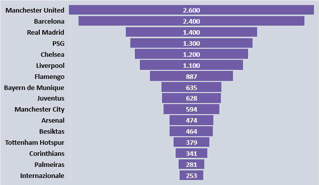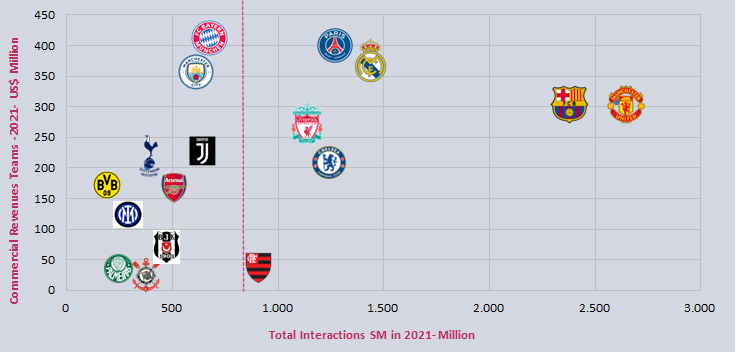 Flamengo aunque no tenga el mismo nivel de cobertura global, mucho por la debilidad del mercado brasileño, es mucho más fuerte en digital que muchos gigantes europeos.
