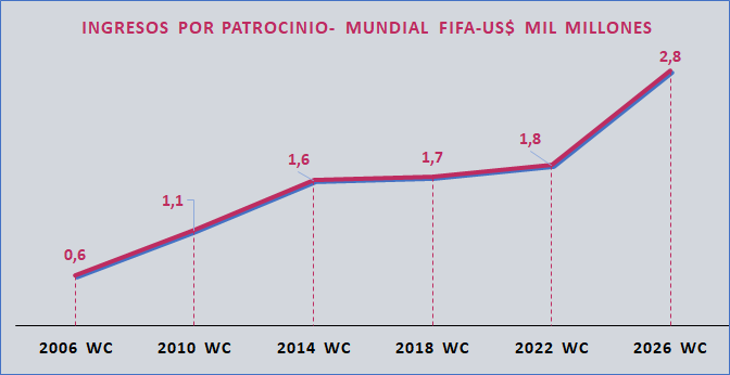 Ya los patrocinios pueden llegar a los US$ 2.8 mil millones, cifras récord para la FIFA.