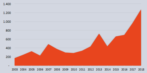 Ingresos con transferencias de jugadores – 2003 a 2018 – (16 años) -US$ millones