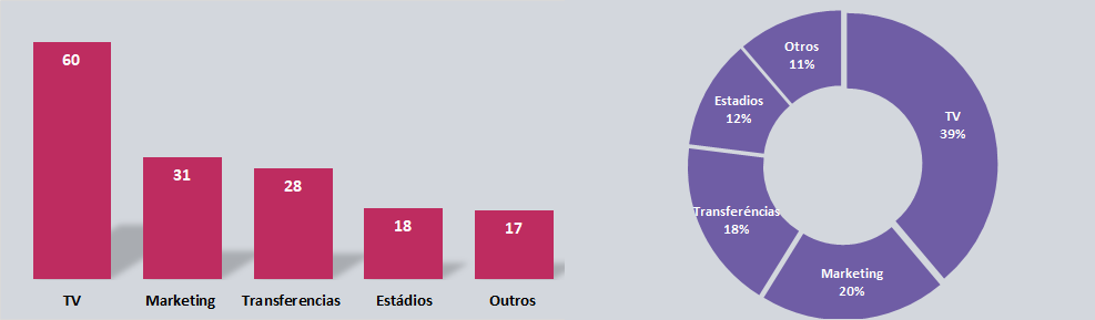 La segunda división genera otros US$ 34 millones, con US$ 23 millones de TV y la tercera división US$ 2 millones. Cifras absolutamente transparentes, también resultado de la nueva legislación y de la madurez del mercado.