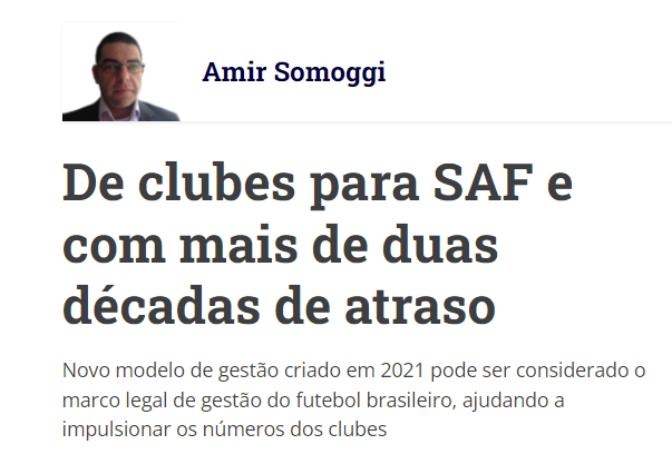 Artigo de Amir Somoggi, sócio da Sports Value para o site O Especialista do banco Safra. A análise aprofunda os impactos da nova Lei e compara com o ocorrido há mais de 2 décadas no futebol europeu.